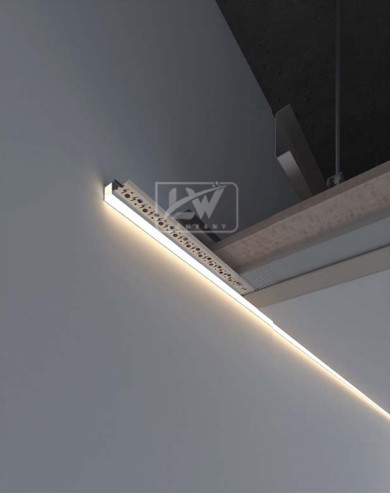 Lắp đặt một bên áp tường, nắp đậy PC có màu đen trắng để chon, PC màu trắng cho ánh sáng đều hơn và độ xuyên thấu ánh sáng cao hơn. Còn PC màu đen khi tắt đèn thì cho hiệu quả như một sợi trang trí màu đen thay thế đèn trang trí truyền thống, lúc đèn sáng trông giống như một tia sáng thẳng tắp, tắt đèn thì như một sợi dây trang trí